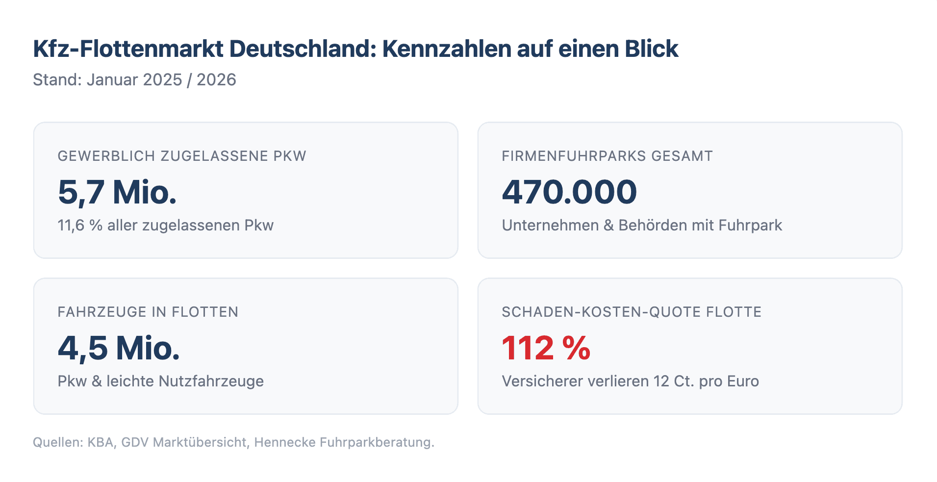In Deutschland sind laut dem KBA (2025) rund 5,7 Millionen Pkw auf gewerbliche Halter zugelassen. Hinzu kommen Millionen leichter und schwerer Nutzfahrzeuge, die täglich im Einsatz sind. Schätzungen zufolge existieren hierzulande über 1,6 Millionen Fahrzeugflotten mit zusammen weit über 4,5 Millionen Fahrzeugen. Für Versicherungsmakler, die im Gewerbekundensegment wachsen wollen, ist die Kfz-Flottenversicherung damit eines der volumenträchtigsten Geschäftsfelder überhaupt.